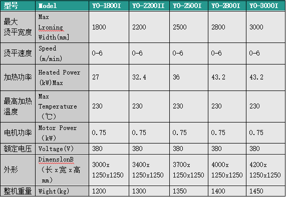 1、 YDI/II electric heating ironing machine adopts electric heating, transmission adopts speed adjustment, according to the heating temperature and fabric thickness at will adjust the speed;