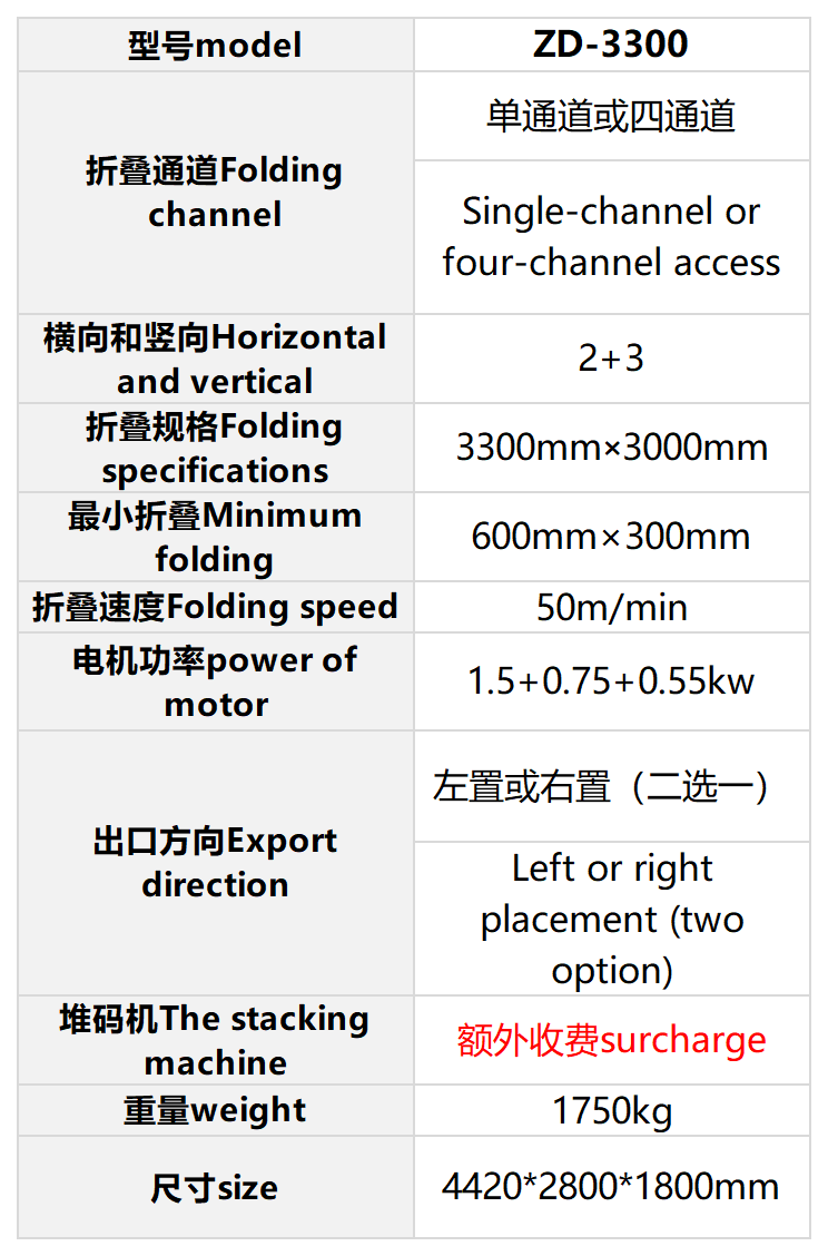 - With folding standard discrimination, protection and alarm, with self diagnosis and automatic management system; Horizontal and vertical folding start control can realize two horizontal and two vertical four channel folding; The key parts of the speed closed-loop and photoelectric detection control system, speed measurement system and transmission system are imported parts; It has the speed control and preparation positioning of the cloth conveying system, and accurately measures and calculates the folding length of the cloth; It can realize process control and directly run online with the ironing machine, which greatly improves the work efficiency and reduces the labor intensity of workers;