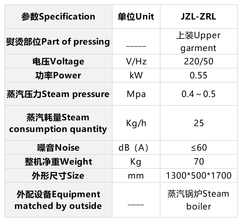 Have components that used to adjust wind pressure, shoulder wide, waistline,hipline,lap and front garment. Small garments like women' wear can be press by this former.