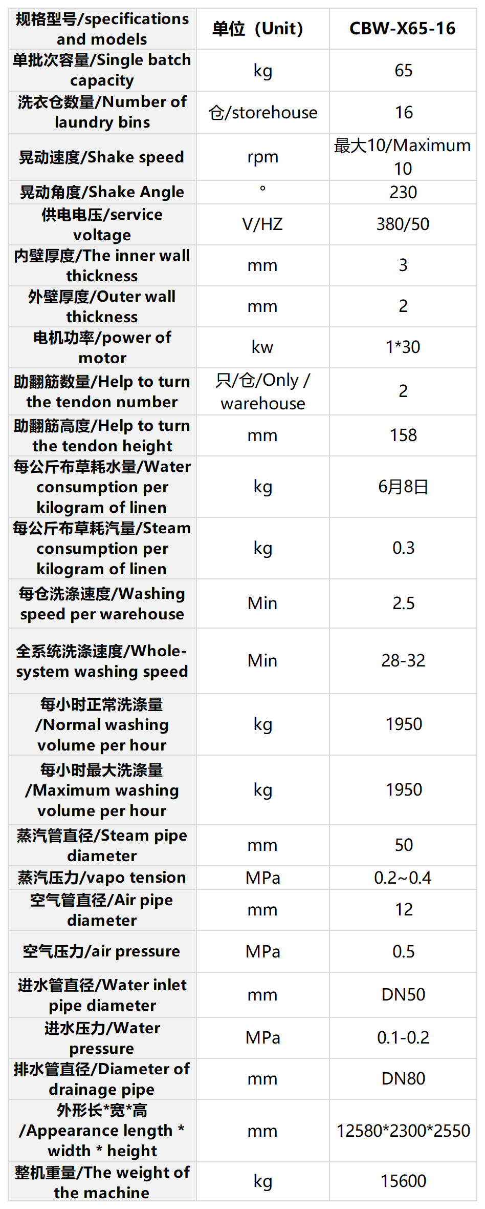 ◎ 16個(gè)洗滌倉,每倉洗滌容量可達(dá) 65kg